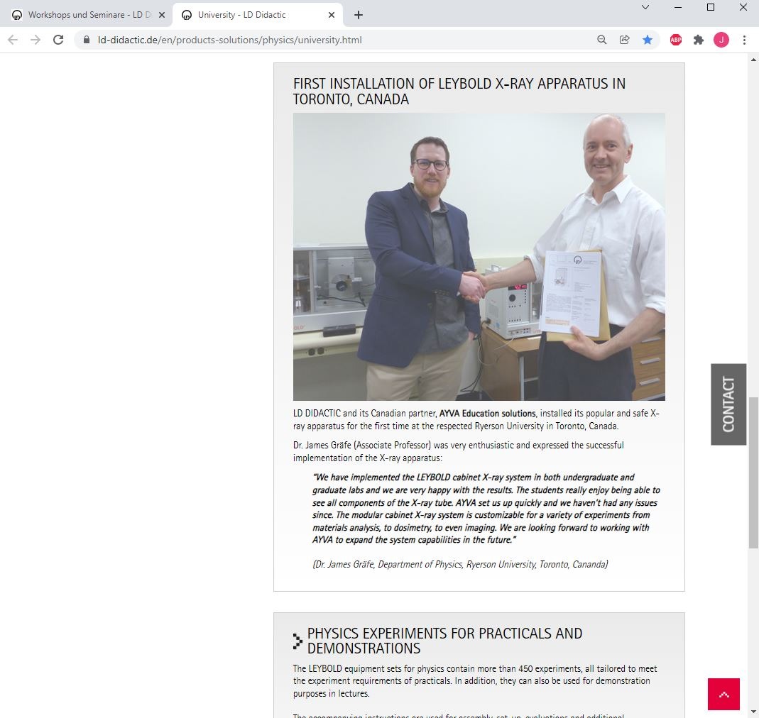 Jörg Grube als Projektleiter, Thematik Röntgentechnik, eingeladen von einer Uni in Kanada