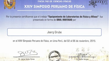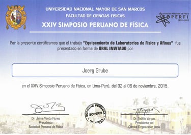 Jörg Grube als Fachreferent der Physik eingeladen zum Symposium in Peru
