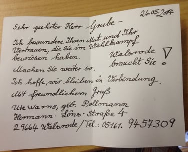 Mir ist wichtig, mich auch öffentlich an Diskussionen zu beteiligen. In verschiedenen Leserbriefen und Beiträgen habe ich zu gesellschaftlichen Themen Stellung genommen – sachlich, klar und verantwortungsbewusst.