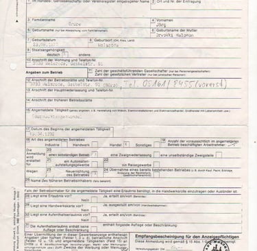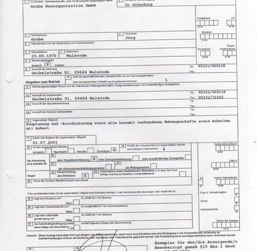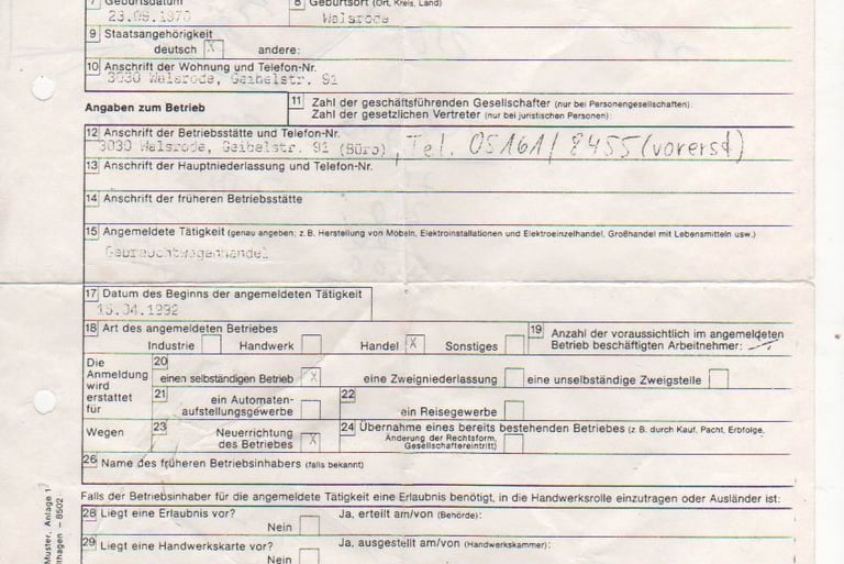 Jörg Grube und eine der ersten Gewerbeanmeldungen (1992).
