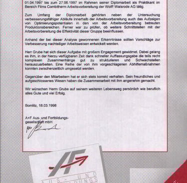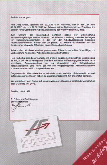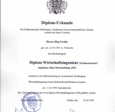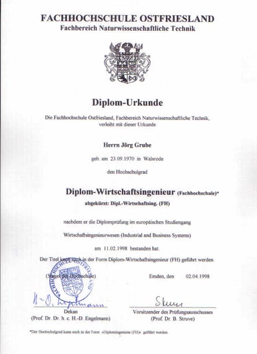 Mein Diplomabschluss bildete die fachliche Grundlage für meinen weiteren beruflichen Weg.