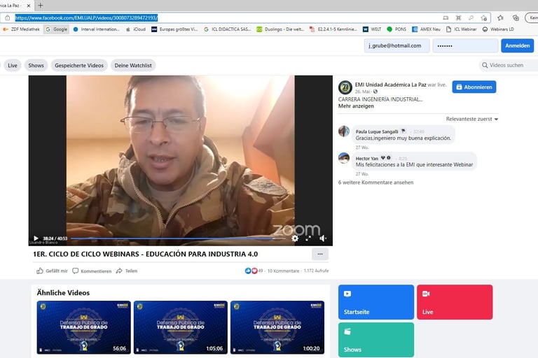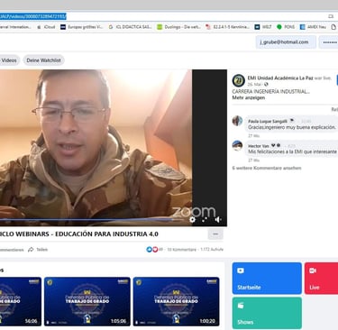 Jörg Grube als Referent der Radartechnik bei einer online Facebook Schulung mit der Militärschule in La Paz, Bolivien