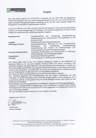Der Einstieg bei Enterprise Rent-A-Car USA/Frankfurt zeigte mir, wie internationale Organisation, Kundenservice und Führung in globalen Strukturen funktionieren.