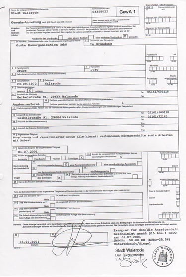 Gründung Grube Bauorganisation GmbH. 2001 habe ich in meiner Heimatstadt Walsrode eine weitere Firma ins Leben gerufen.
