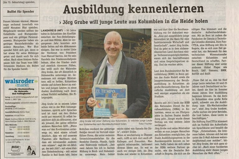Ein weiteres Projekt war die Initiative, jungen Menschen aus Kolumbien Ausbildungs- und Zukunftsperspektiven in der Lüneburger Heide zu ermöglichen. In einem Land, das über Jahrzehnte von Konflikten geprägt war, kann Bildung ein entscheidender Beitrag zu Stabilität und Frieden sein.