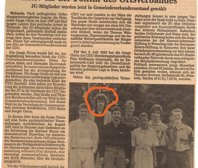 Mein politisches und unternehmerisches Engagement begann früh. Ende der 1980/Anfang der 1990er Jahre brachte ich mich im Ortsverband der Jungen Union in Walsrode ein. Politische Mitsprache und bürgerschaftliches Engagement waren mir schon damals wichtig.